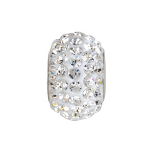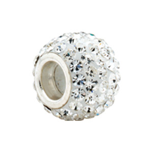 This round Kera bead with clear crystals is made of polished sterling silver. Dimensions: 12mm x 8mm. Weight: 0.15 grams.