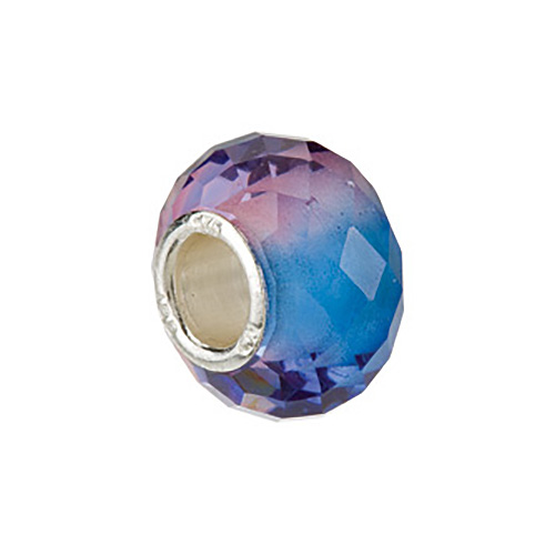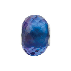Kera blue and purple faceted glass bead is made of polished sterling silver. Dimensions: 15.00 X 10.00 MM. Weight: 0.7 grams.
