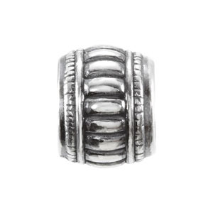 The Kera barrel bead is made of polished sterling silver. Dimensions: 8.77 X 6.52 MM. Weight: 1.7 grams.