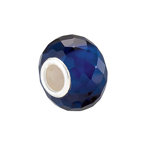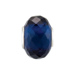 Kera blue sapphire colored faceted glass bead is made of polished sterling silver. Dimensions: 11.00 X 15.50 MM. Weight: 0.7 grams.