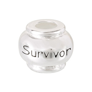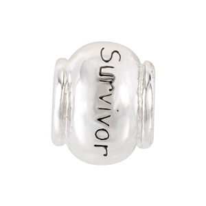 This Survivor bead is made of polished sterling silver. Dimensions: 10.00 MM. The hole is 4.5mm. Weight: 2.16 grams. This Kera bead fits all major modular bracelet brands. Available while supplies last.