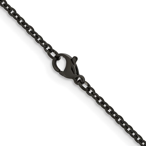 Polished black-plated cable chain is made of 316L stainless steel. Width: 2.3mm. Fancy lobster clasp. Length: 18in. Weight: 3.9 grams. Imported.