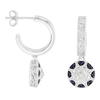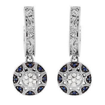 Polished 14kt white gold earrings feature 16 genuine blue sapphires and 14 diamonds. Approximate weight: 5.7 grams. See matching necklace: JJ69533.