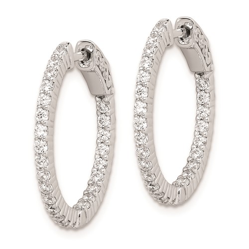 Sterling silver Inside and out hoop earrings feature 50 x 3.4mm round brilliant cubic zirconias. 2-prong shared setting. Diameter: 7/8in. Weight: 4.5 grams. Imported.