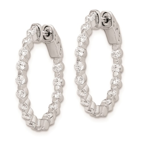 Sterling silver inside and out hoop earrings feature 30 x 2.3mm round brilliant cubic zirconias. 1-prong shared setting. Diameter: 1in. Weight: 5.42 grams. Imported.