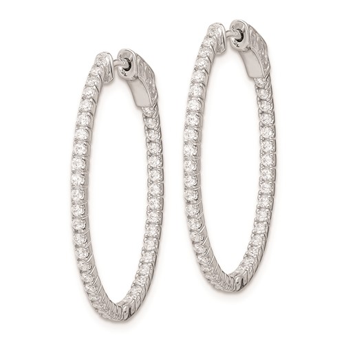 Sterling silver inside and out oval hoop earrings feature 80 x 1.1mm round brilliant cubic zirconias. 4-prong shared setting. Rhodium plated. Weight: 4.09 grams. Imported.
