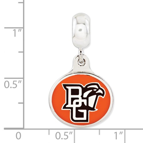 This enamel Bowling Green State University dangle bead is made of antiqued, solid sterling silver. Two-sided design. Dangle charm dimensions 15.6mm x 18mm. Made in the USA. Officially licensed product of Bowling Green University. This bead is compatible with all major personalized bead bracelet systems.