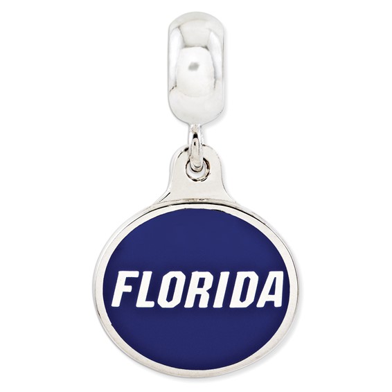 This enamel Florida Gators dangle bead is made of antiqued, solid sterling silver. Two-sided design. Dangle charm dimensions 15.6mm x 18mm. Made in the USA. Officially licensed product of the University of Florida. This bead is compatible with all major personalized bead bracelet systems. Available while supplies last.
