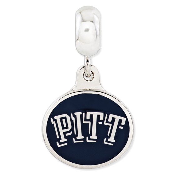 This enamel University of Pittsburgh dangle bead is made of antiqued, solid sterling silver. Two-sided design. Dangle charm dimensions 15.6mm x 18mm. Made in the USA. Officially licensed product of University of Pittsburgh. This bead is compatible with all major personalized bead bracelet systems.