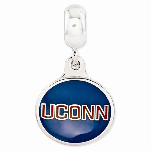 This enamel UConn dangle bead is made of antiqued, solid sterling silver. Two-sided design. Dangle charm dimensions 15.6mm x 18mm. Made in the USA. Officially licensed product of the University of Connecticut. This bead is compatible with all major personalized bead bracelet systems.