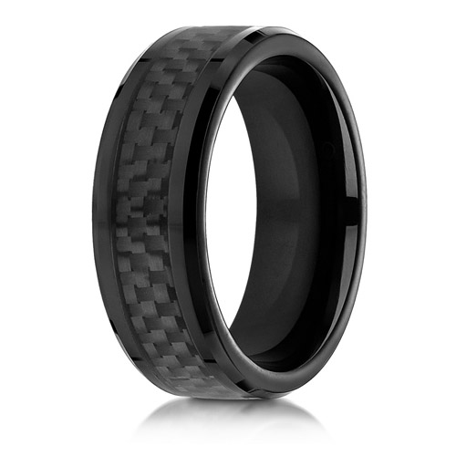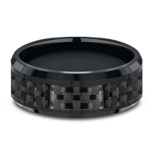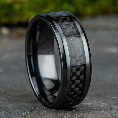 This black cobalt chrome ring features a black carbon fiber inlay. Comfort fit. Width: 8mm. Thickness: 2.0mm. Made in USA. About Cobalt Chrome