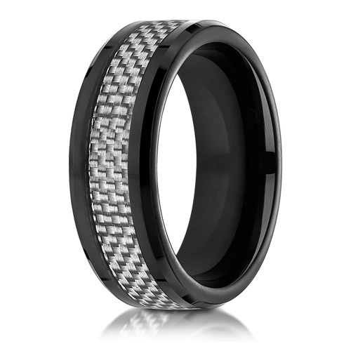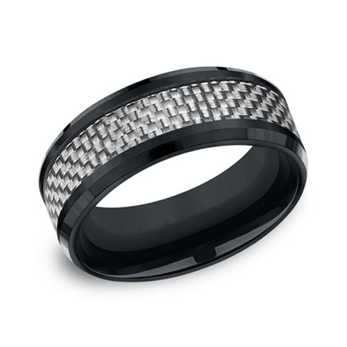 This black cobalt chrome ring features a gray carbon fiber inlay. Comfort fit. Width: 8mm. Thickness: 2.0mm.About Cobalt Chrome