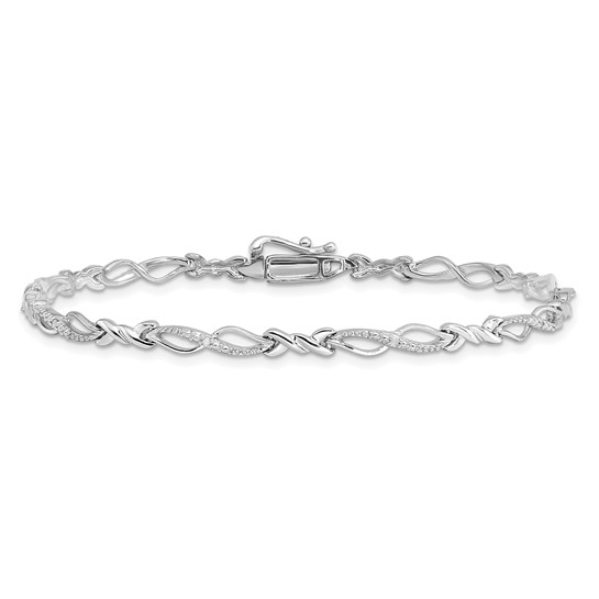 Polished sterling silver diamond bracelet has infinity symbol links. Appproximate weight: 5.4 grams. Box closure. Length: 7in.