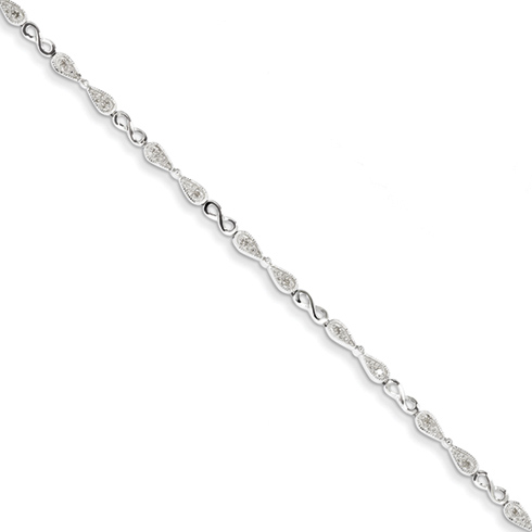 Polished sterling silver diamond bracelet has infinity symbol links. Appproximate weight: 3.4 grams. Lobster clasp. Length: 7in. Imported.