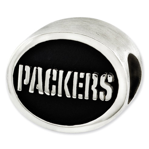Green Bay Packers bead is made of antiqued, solid sterling silver. Two-sided design, bead hole diameter is 4mm. Made in the USA. Officially licensed NFL product. This bead is compatible with all major personalized bead bracelet systems.