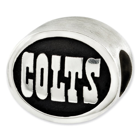 Indianapolis Colts bead is made of antiqued, solid sterling silver. Two-sided design, bead hole diameter is 4mm. Made in the USA. Officially licensed NFL product. This bead is compatible with all major personalized bead bracelet systems.