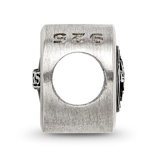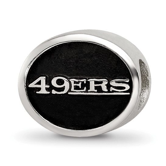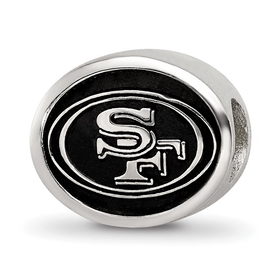 San Francisco 49ers bead is made of antiqued, solid sterling silver. Two-sided design, bead hole diameter is 4mm. Made in the USA. Officially licensed NFL product. This bead is compatible with all major personalized bead bracelet systems.