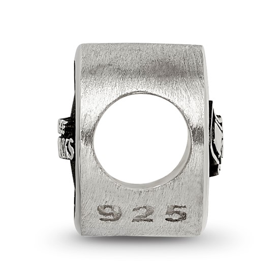 Seattle Seahawks bead is made of antiqued, solid sterling silver. Two-sided design, bead hole diameter is 4mm. Made in the USA. Officially licensed NFL product. This bead is compatible with all major personalized bead bracelet systems.