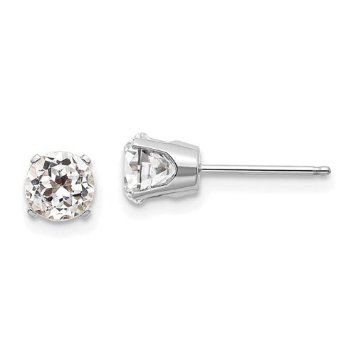 This pair of genuine white topaz stud earrings is set in 14k white gold. Each round white topaz is 5mm in diameter. Imported.