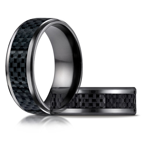 This 8mm black titanium ring features a black carbon fiber center. Not plated, 100% black titanium all the way through the ring! Comfort fit. Made in the USA.Manufacturer's Lifetime GuaranteeIf your ring is ever damaged during normal wear, the manufacturer will repair or replace your wedding ring free of charge. If your finger size ever changes, the manufacturer will resize or replace your ring free of charge. In the case that the manufacturer has to add material to your ring, you will only be charged for the difference in the additional metal or stones needed to restore the piece. Guarantee ParametersThe guarantee does not cover rings that have been ordered in the wrong finger size or finger sizes that may have changed between the time of purchase and the actual physical receipt of the piece. Third party alterations, other than engraving, will void the warranty.Manufacturer reserves the right to deny the Lifetime Guarantee for any ring that shows signs of abuse or tampering.