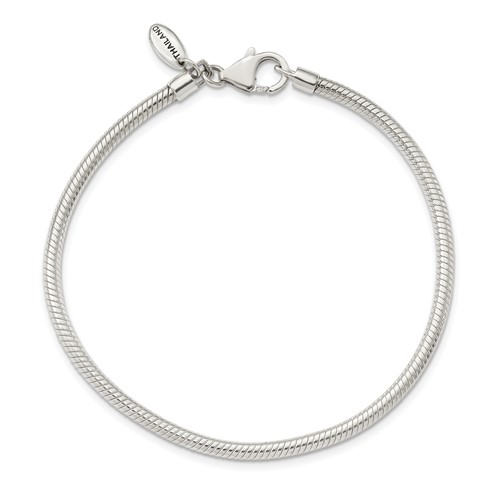 This sterling silver snake chain necklace is made especially for Reflection Beads, but is compatible with other leading brands. This necklace has a polished, solid sterling silver lobster clasp. Imported.