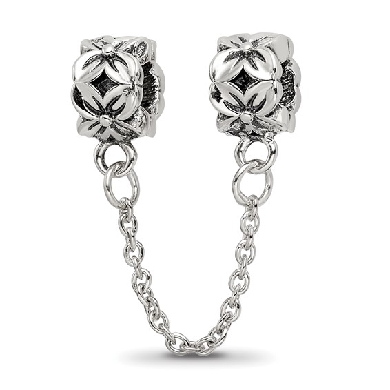 Security chain floral bead is made of antiqued, solid sterling silver. Please note, the security chains do not work as stoppers, clips or spacers. You must use stoppers with them.