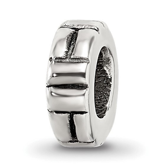 This spacer bead has vertical and horizontal notches and is made of antiqued, solid sterling silver. Item size: 8.1mm x 2.7mm. This Reflection bead fits all major modular bracelet brands. Import.