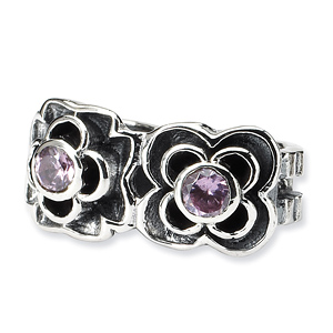 Pink cubic zirconia and flowers connector bead is made of antiqued, solid sterling silver. Imported.