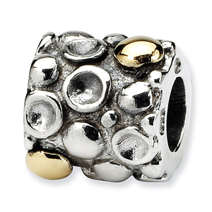 Bali bead has a dot pattern and is made of antiqued, solid sterling silver with 14k yellow gold accents. This Reflection bead fits all major modular bracelet brands. Import.