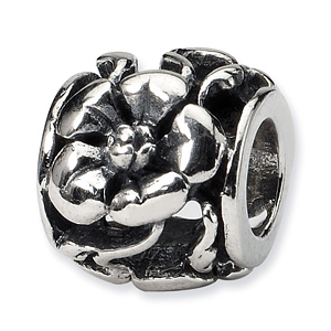 Floral bead is made of antiqued, solid sterling silver. Item size: 9mm x 8.1mm. Imported.