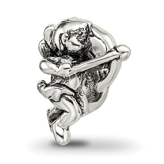 Cupid bead is made of antiqued, solid sterling silver. This Reflection bead fits all major modular bracelet brands. Import.