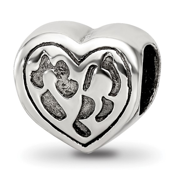 This heart shaped Reflections bead is made of antiqued, solid sterling silver. This bead fits all major modular bracelet brands. Import.