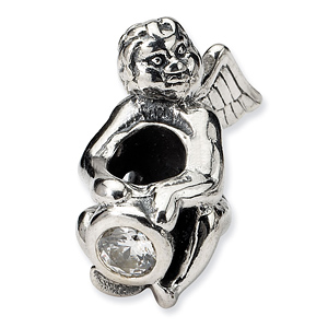 Sterling silver angel bead has a round clear cubic zirconia accent. This Reflection bead fits all major modular bracelet brands. Import.