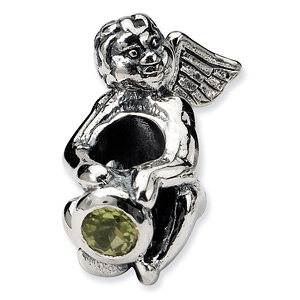 Sterling silver angel bead has a round peridot cubic zirconia accent. This Reflection bead fits all major modular bracelet brands. Import.