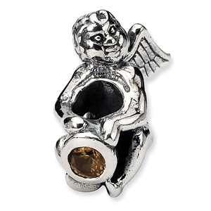Sterling silver angel bead has a round orange cubic zirconia accent. This Reflection bead fits all major modular bracelet brands. Import.