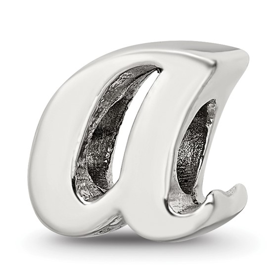 This letter a script bead is made of polished sterling silver. This bead fits all major modular bracelet brands. Imported.