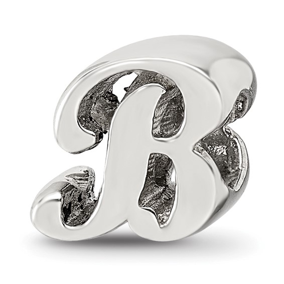 This capital letter B script bead is made of polished sterling silver. This bead fits all major modular bracelet brands. Imported.