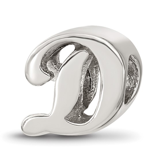 This capital letter D script bead is made of polished sterling silver. This bead fits all major modular bracelet brands. Imported.