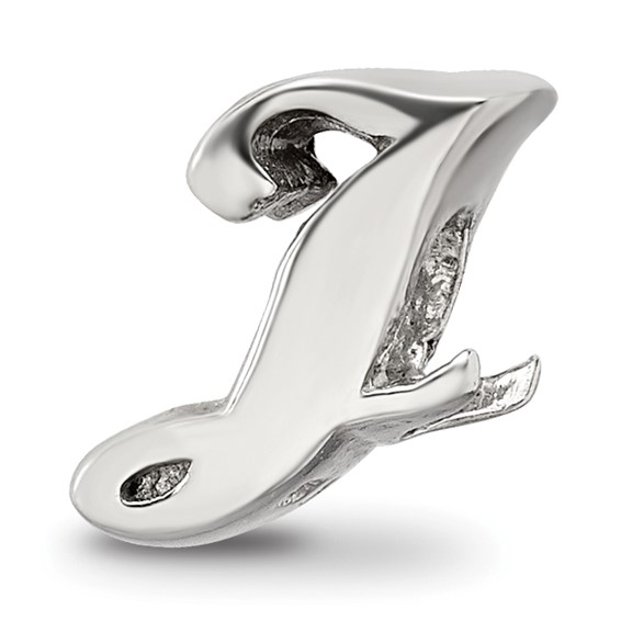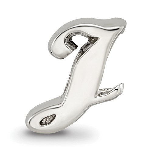 This capital letter J script bead is made of polished sterling silver. This bead fits all major modular bracelet brands. Imported.
