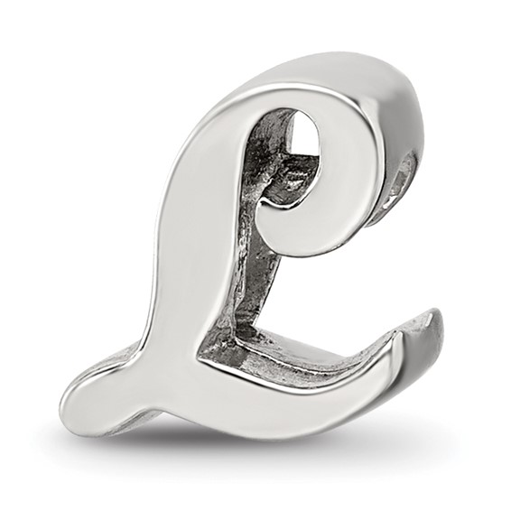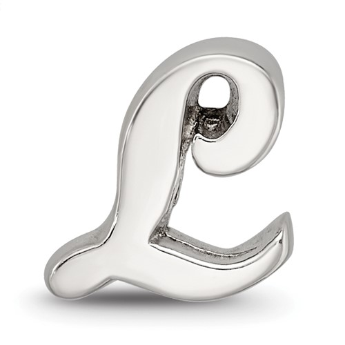 This capital letter L script bead is made of polished sterling silver. This bead fits all major modular bracelet brands. Imported.