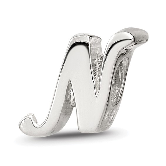 Letter N script bead is made of antiqued, solid sterling silver. This bead fits all major modular bracelet brands. Imported.