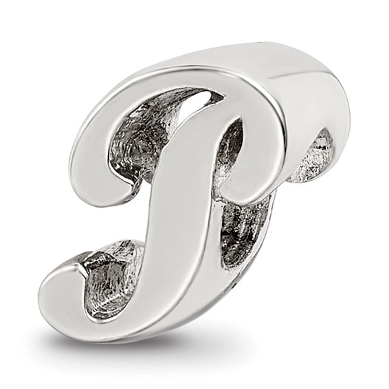 Letter P script bead is made of antiqued, solid sterling silver. This bead fits all major modular bracelet brands. Imported.