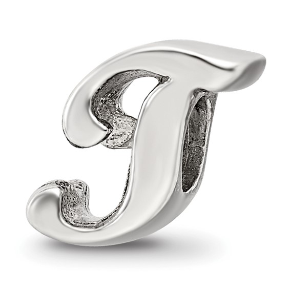 Capital letter T script bead is made of antiqued, solid sterling silver. This bead fits all major modular bracelet brands. Imported.