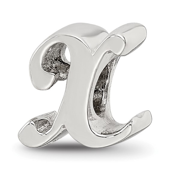 Letter X script bead is made of antiqued, solid sterling silver. This bead fits all major modular bracelet brands. Imported.