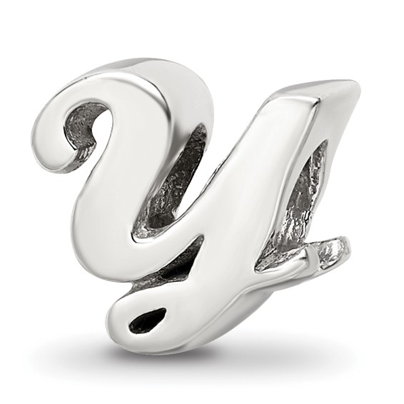 Letter Y script bead is made of antiqued, solid sterling silver. This bead fits all major modular bracelet brands. Imported.