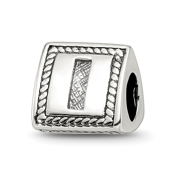 Block letter I triangular bead is made of antiqued, solid sterling silver. Imported.