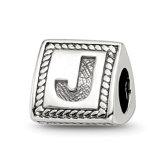 Block letter J triangular bead is made of antiqued, solid sterling silver. This Reflections bead fits all major modular bracelet brands. Imported.