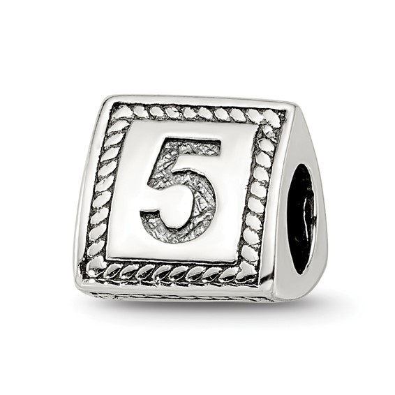 Block number 5 triangular bead is made of antiqued, solid sterling silver. This Reflection bead fits all major modular bracelet brands. Import.