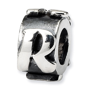 Letter R message bead is made of antiqued, solid sterling silver. Reflection bead fits all major modular bracelet brands. Import.