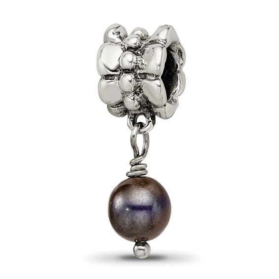 Grey freshwater cultured pearl dangle bead is made of antiqued, solid sterling silver. Reflections bead fits all major modular bracelet brands. Import.